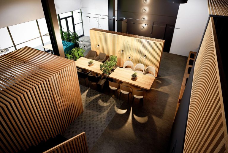 Magebit ir globāla pilna servisa aģentūra, kas specializējas Magento ar sertificētiem ekspertiem, kuri ir gatavi paātrināt jūsu biznesa attīstību. Magebit galvenajā ēkā Latvijā biroja telpu ir daudz, un to plašumam bija nepieciešama arī piemērota izmēra ēdnīca. Dizainere Zane Skalberga no studijas Art Express veidojusi “iekšējā restorāna” dizainu darbinieku labklājībai. Ēdnīcā iespējams paēst, kā arī izpausties sarunās un pat strādāt. Tās dizains līdzinās modernam restorānam un uz brīdi liek aizmirst, ka patiesā atrašanās vieta ir birojs. Interjerā manāmi dažādi kokmateriāla akcenti un tumši pelēks, kā arī tirkīzzils krāsu tonis. Lai radītu telpiskuma sajūtu un nodrošinātu apmeklētāju privātumu, galdiņi atdalīti ar telpaugiem vai koka brusu sienām. Apgaismojums ir gan tehnisks, gan dizainisks – pie griestiem stiprinātas sliežu tipa lampas un griestos karinātas lustras dažādos izmēros. Mājīguma sajūtai pie sienām stiprināti noapaļoti, šķīvjiem līdzīgi apgaismojuma elementi. LightUp sagādājis gan gaismas, gan krēslus no ražotājiem Vācijā, Grieķijā un Spānijā.
