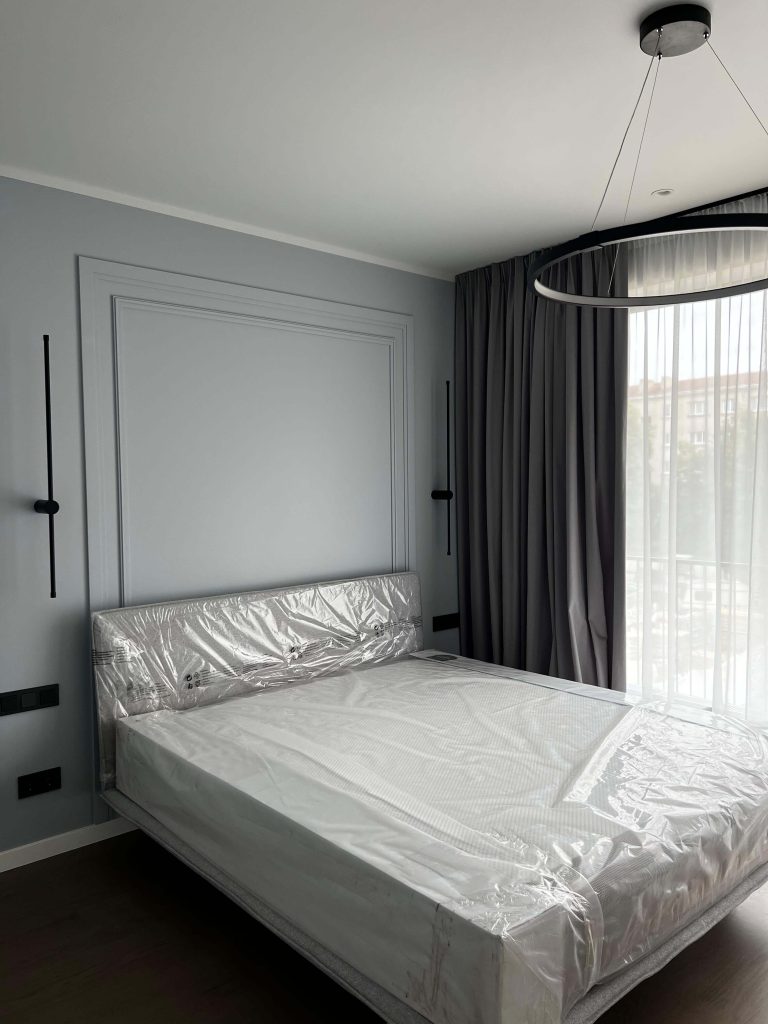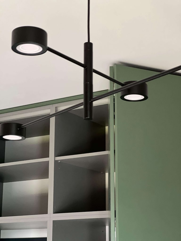 Dizainu Raunas ielas rezidences dzīvoklī veidojusi Rūta Klišāne (KRINTERIOR dizaina studijas īpašniece). Telpās manāmi pasteļa/bēši krāsu toņi, tādēļ apgaismojums piemeklēts tāds, lai iekļautos dzīvokļa koptēlā. LightUp piegādājis lustras, sliežu tipa prožektorus un dažādus sienu apgaismojumus.