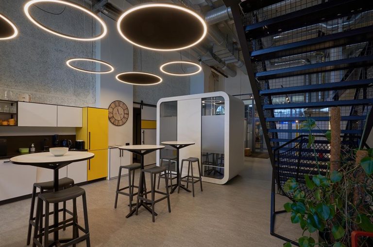 Uzkopšanas kantora SOL Baltics Latvijas biroja telpu dizainu veidojusi interjera dizainere Zane Skalberga no dizaina studijas Art Express. Projektēts ne tikai birojs Latvijā, bet arī Igaunijā – Tartu un Tallinā.  Interjerā dominē balta un melna krāsa, kas akcentēta ar dzeltenu un vietām arī sarkanu krāsu detaļu izvietošanu. Telpās dominē tehniskais apgaismojums – dažādas sliežu apgaismojuma sistēmas. Biroja telpu platību dēļ, skaņas izolācijai pie griestiem piekārtas arī lampas, kurās iestrādāti akustiskie paneļi. Caur LightUp pasūtītas gan tehniskās, gan akustiskās lampas un krēsli